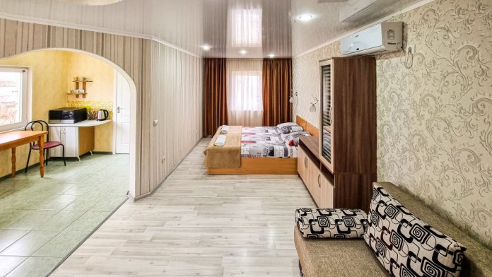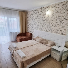 Гостевой дом находится на улице без интенсивного движения транспорта и в удалении от шумных ночных заведений. За 7-8 минут Вы дойдете как до центрального пляжа (песок, галька), так и до песочного пляжа.