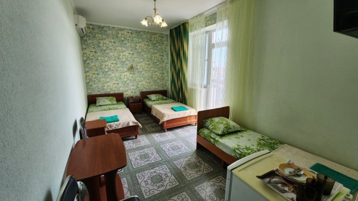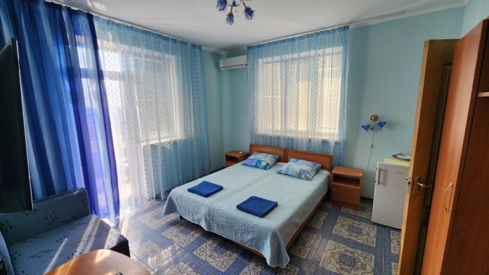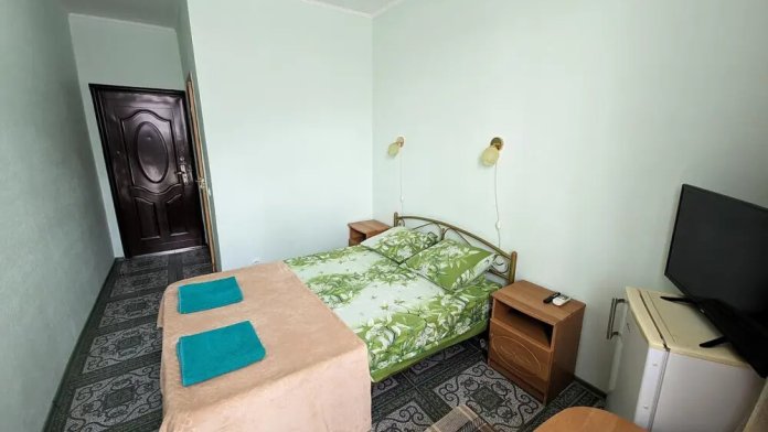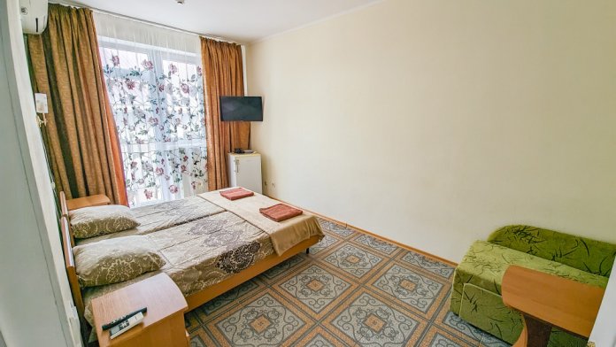 Номер находится на втором этаже. В номере есть санузел, холодильник, ТВ, кондиционер, сейф. необходимая мебель.