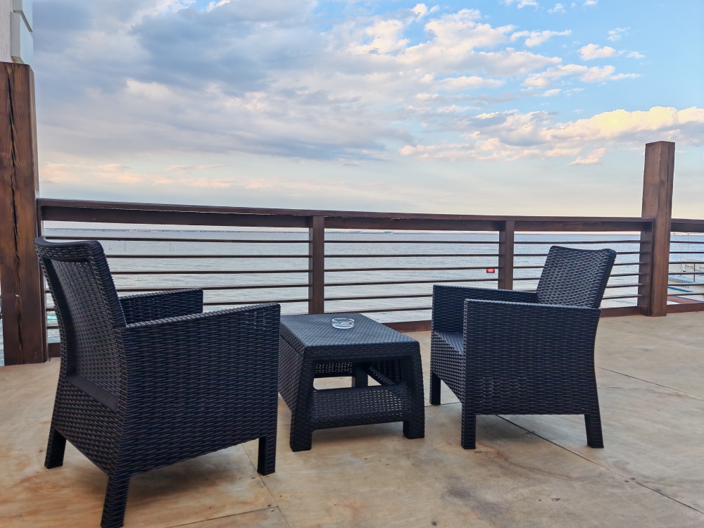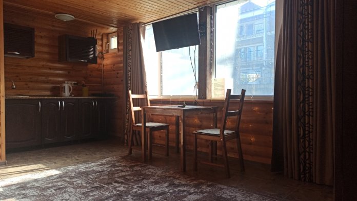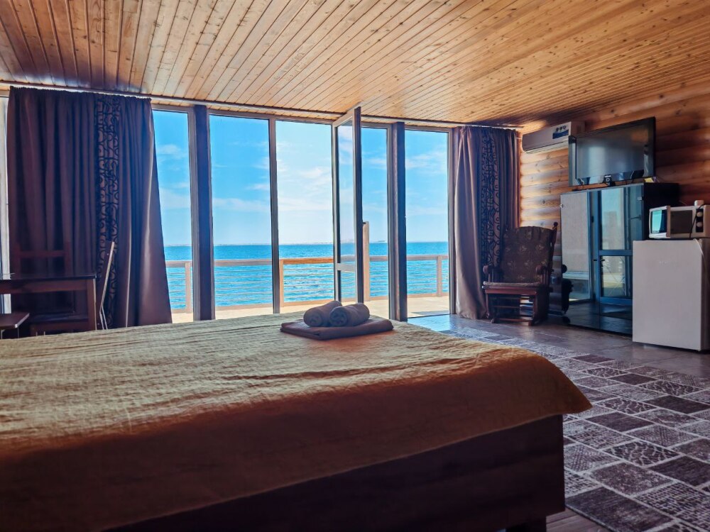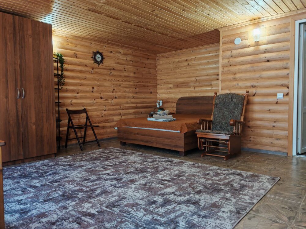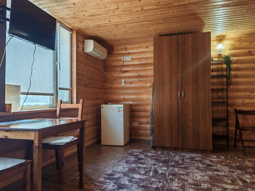 Мебель: двуспальная кровать, шкаф, стулья, прикроватные тумбочки, стол, зеркало, кухонный гарнитур, обеденная, зонавозможно доп. место (платно) - еврораскладушка.