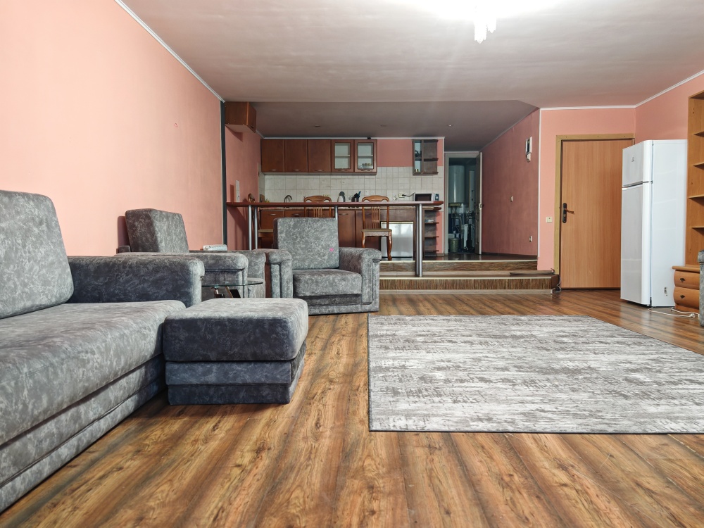 Мебель: двуспальная кровать, кресло-кровать, шкаф, стол, журнальный столик, комод, прихожая, зеркало, кухонный гарнитур, обеденная зона, возможно доп. место (платно) - еврораскладушка.