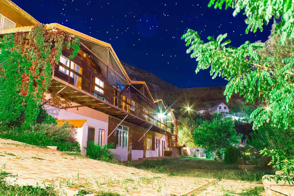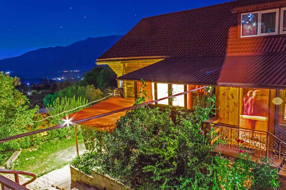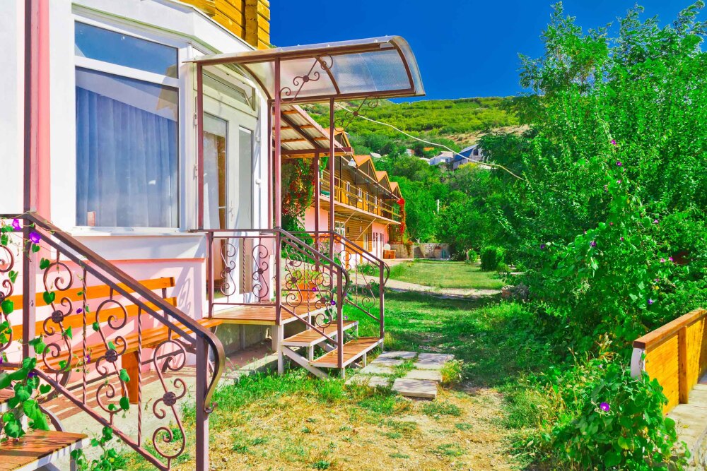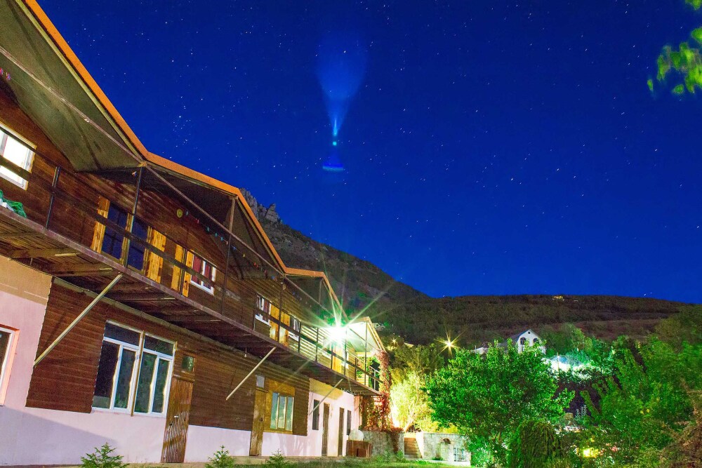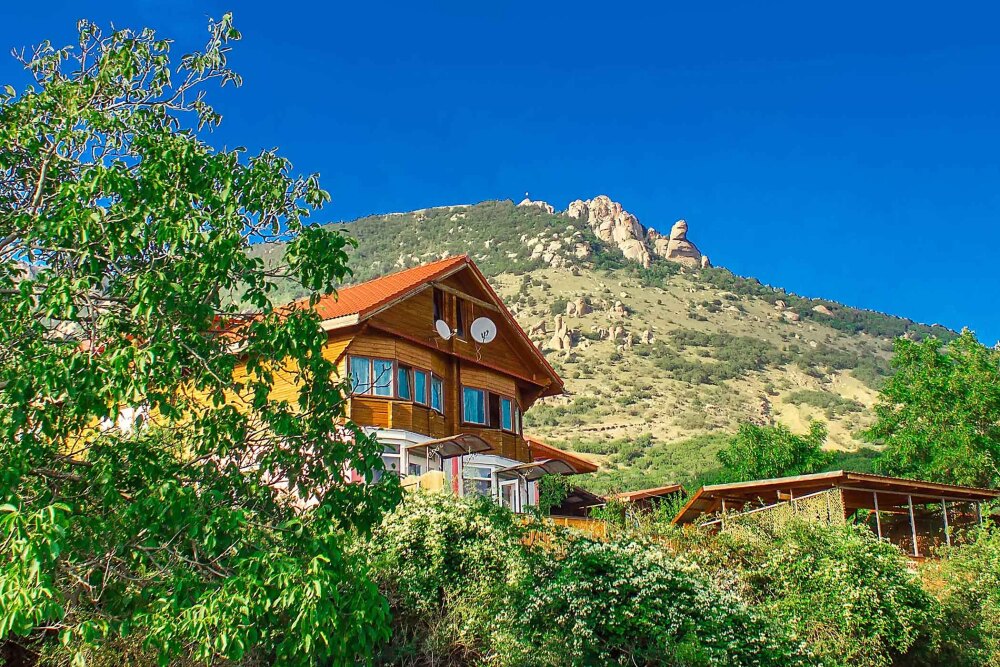 Гостевой дом расположен в с. Лучистое, у подножия горы Демерджи (1366м.) - одной из самых красивых гор Крыма. В 1 км от гостевого дома находится знаменитая Долина Привидений и места сьемок легендарных советских фильмов. Именно здесь снимались «Кавказская пленница», «Сердца трех», «Мираж». Одним из достоинств гостевого дома является его уникальное месторасположение, со двора и окон номеров которого, открываются прекрасные виды на окрестности, море и горы.