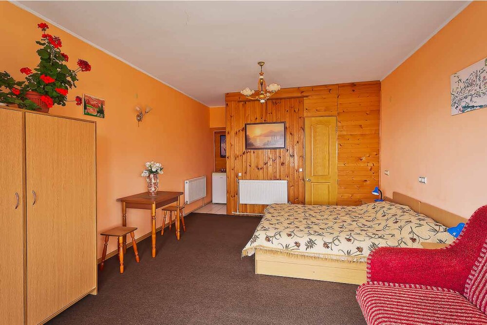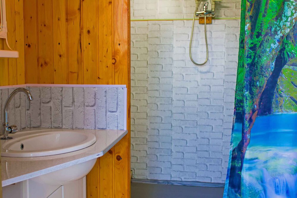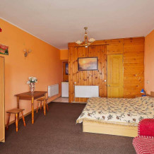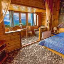 Это уникальное место отдыха с чистейшим воздухом, водой, где каждый найдет себе занятие по душе! Особенно рекомендуем любителям активного отдыха! Гостевой дом построен в 2013 году. Двухэтажной здание из экологически чистых материалов, первый этаж из натурального камня, второй - деревянный сруб. На первом этаже два 3-местных номера с отдельным входом. На втором этаже находятся три 3-местных номера с видом на море и горы, есть общая столовая, общая кухня для самостоятельного приготовления пищи со всем необходимым (электроприборы, посуда, холодильник и т.д.). Также на втором этаже находится комната отдыха с плазменным телевизором, застекленная терраса с видом на горы и море.
