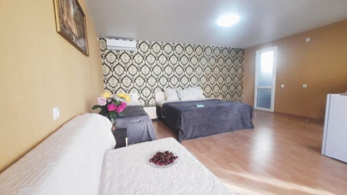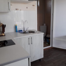 Апартаменты однокомнатные с мини кухней. Размещение от 3 до 4 человек. В номере душ, туалет,умывальник, телевизор, холодильник и мини кухня, кондиционер.
