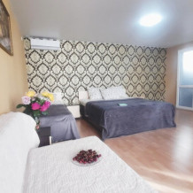 Апартаменты двухкомнатные с мини кухней. Размещение от 4 до 5 человек. В, номере душ, туалет,умывальник, телевизор, холодильник и мини кухня, кондиционер.