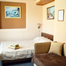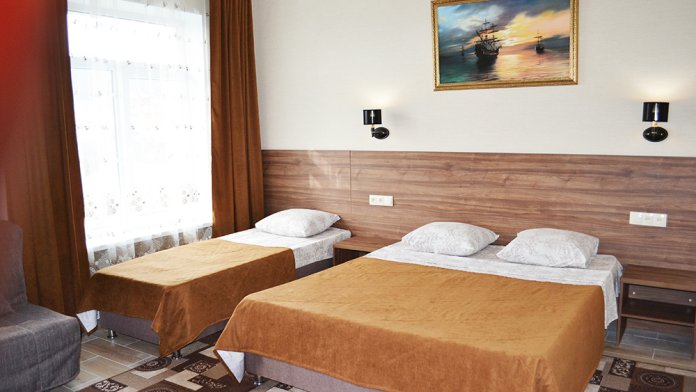 Уютный цветочный дворик с беседкой, мангал, общая кухня, большое пространство для Вашего отдыха, комфортабельные номера с видом на море или на горы. В номерах: санузел (горячая/холодная вода круглосуточно), кондиционер, холодильник, электрочайник, посуда кабельное или цифровое TV, бесплатный Wi-Fi.
