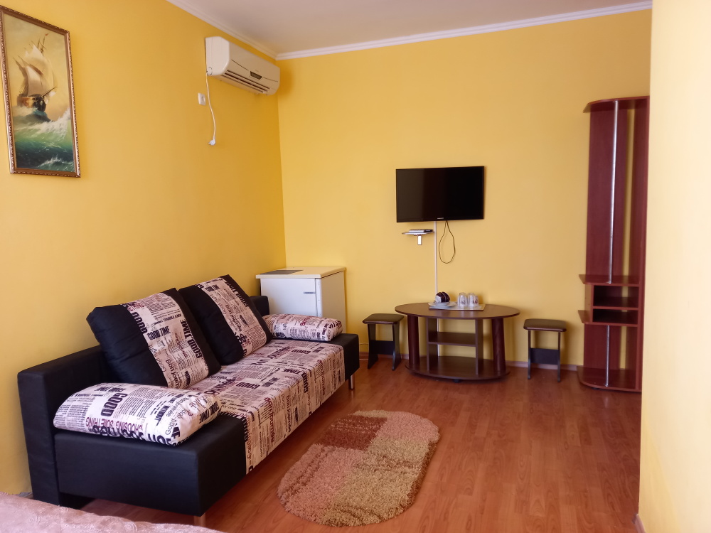 В поселке большое количество кафе, столовых, закусочных, где вкусно накормят за демократичную цену. Так же есть магазинчики, аптека и свой рынок. Сам Гостевой дом находится в семи минутах ходьбы от многокилометровой песочной косы Золотого пляжа, омываемого теплым, ласковым Черным морем.