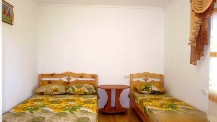 В номере: эксклюзивные кровати из натурального дерева с ортопедическими матрацами двухспальная (200*140) + односпальная (200*80), детская кроватка (по запросу); телевизор, кондиционер; собственная ванная комната с душем, х/г вода постоянно; своя кухня с необходимой посудой, плитой и холодильником; большая терраса, свой персональный вход в номер.