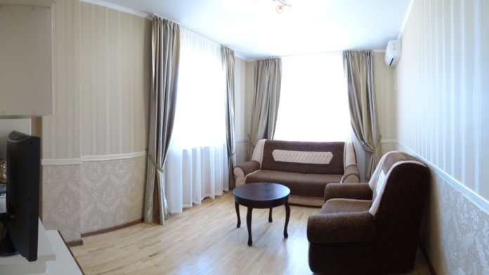 Номер с выходом во двор. Есть освещение во дворе в ночное время для приятного время провождения.
