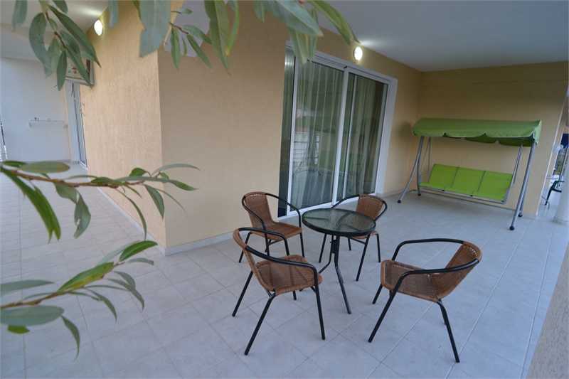 - большая галерея для загара с шезлонгами и столиками,