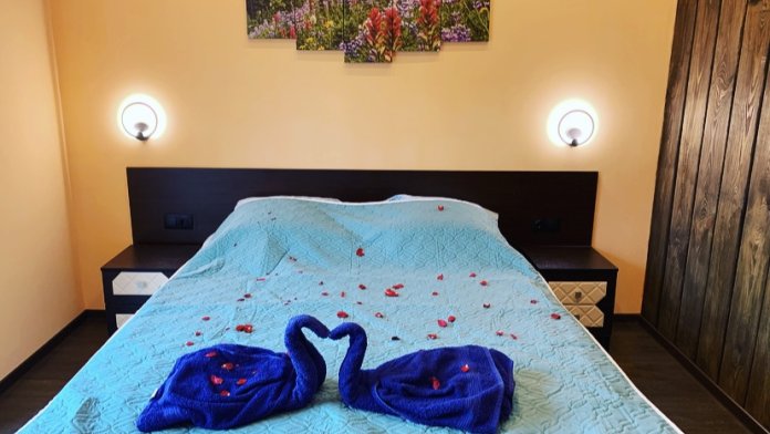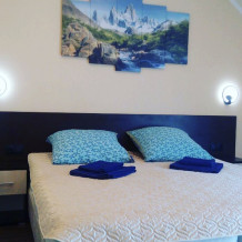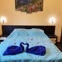 В номере: Мини-кухня ( оборудована всем необходимым для самостоятельного приготовления пищи),обеденная зона,две раздельные комнаты,в каждой комнате плазменный телевизор.
