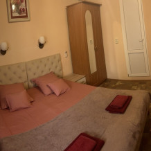 В номере находится шкаф для одежды,одна двуспальная и две односпальные кровати или диванчик, прикроватные тумбочки,бра над кроватями, журнальный столик и стулья,шкаф с посудой для вашего личного пользования(тарелки,стопки,бокалы,доска,нож,