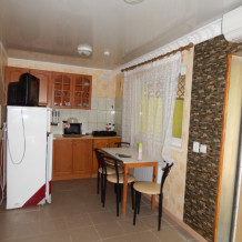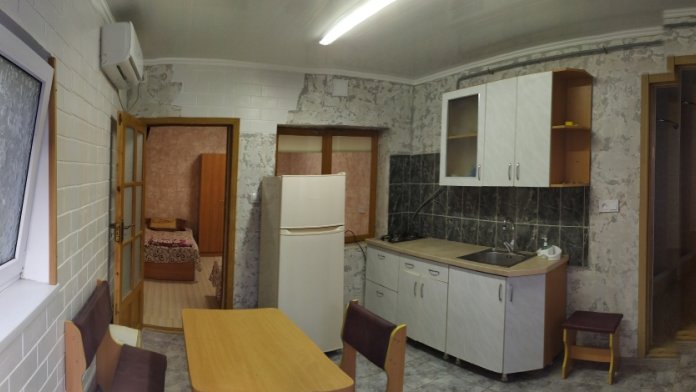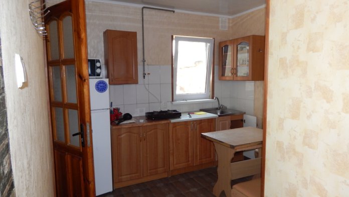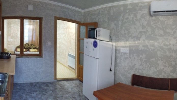 Домик двух комнатный, Wi-Fi, кухня (рабочий стол, обеденный стол с мягким уголком, и все принадлежности для приготовления, сан узел все в домике . На территории находится беседка для отдыха, мангал для приготовления шашлыка. Во дворе 5 номеров.