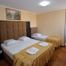 У нас можно снять по-домашнему уютные одноместные, двухместные и трёхместные комфортабельные номера. Все номера гостевого дома оборудованы кондиционером, современной бытовой техникой, необходимой мебелью и спальными принадлежностями. В каждом номере имеется собственный санузел.