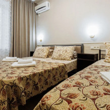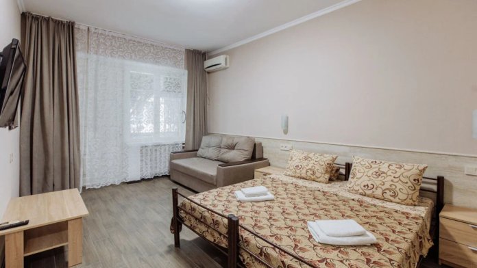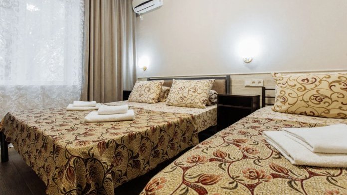 Номер оснащен двуспальной и односпальной кроватями, которые обеспечат вам отличный сон и отдых после активного дня. Также в номере предусмотрены кондиционер, холодильник, ЖК-телевизор