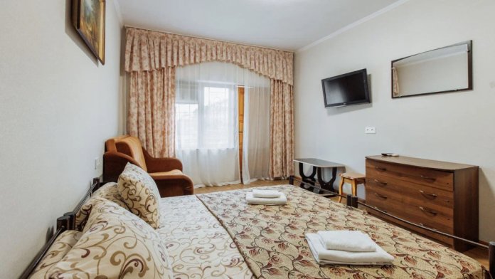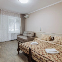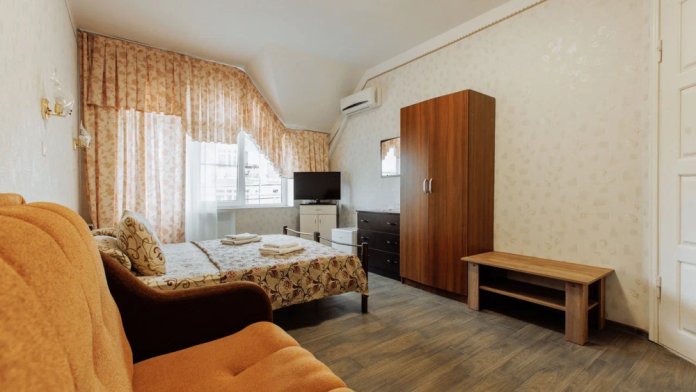 Однокомнатный номер, созданный для комфортного размещения семьи с детьми. Индивидуальный санузел оборудован ванной.