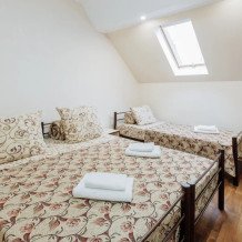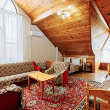 Однокомнатный мансардный номер, созданный для комфортного размещения трех гостей. Индивидуальный санузел оборудован душем