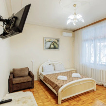 Однокомнатный номер, созданный для комфортного размещения пары с ребенком. Индивидуальный санузел оборудован душем.