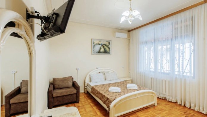 В уютном дворике гостевого дома установлены столики, где Вы сможете отдохнуть вечером от дневной суеты, перекусить, попить вина. Наши гости могут пользоваться оборудованной кухней для самостоятельного приготовления пищи. Кроме того, рядом есть множество различных столовых, кафе и ресторанов. Все номера благоустроенные, оснащены кондиционером и телевизором с плоским экраном. Во всем гостевом доме предоставляется бесплатный Wi-Fi. К услугам гостей – бесплатные гладильные принадлежности и прачечная. Смена белья, полотенец и уборка номеров каждые три дня или по запросу.