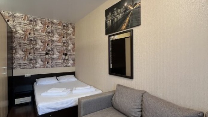 В номере: 1 двуспальная кровать и 1 диван односпальный.