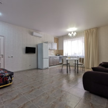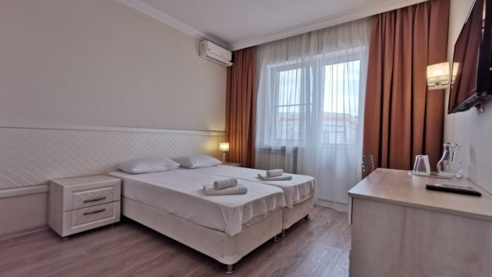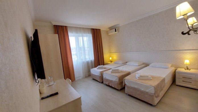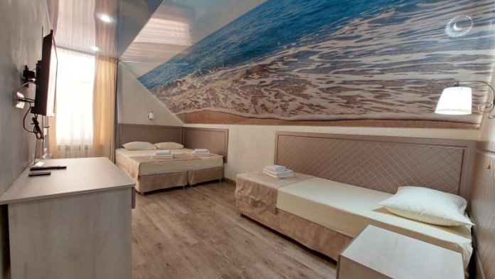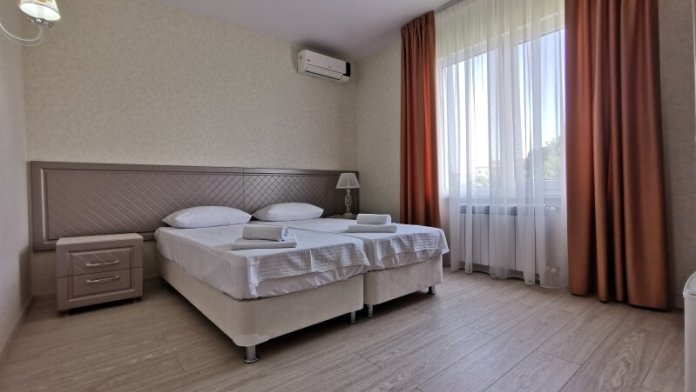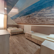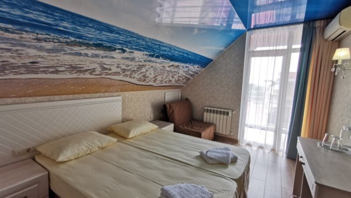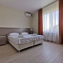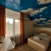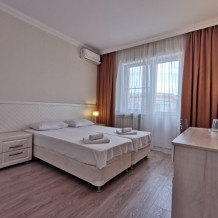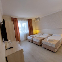 Гостевой дом - это четырехэтажное комфортабельное здание, три этажа занимают номера для проживания, четвёртый вмещает в себя апартаменты класса Люкс. Номера оснащены кондиционером, мини-холодильником, душ, туалет, бесплатный Wi-Fi. Некоторые из номеров имеют выход на балкон.
