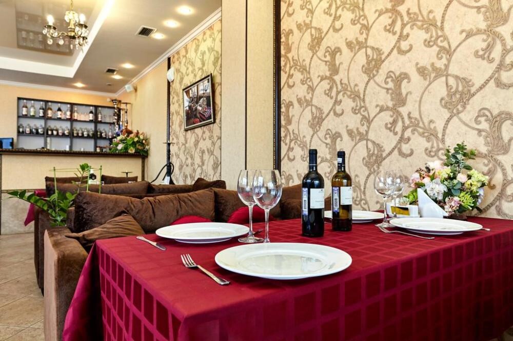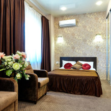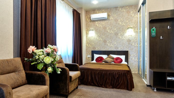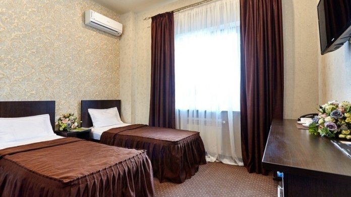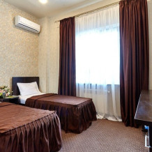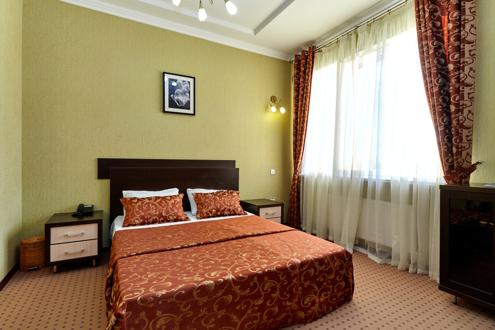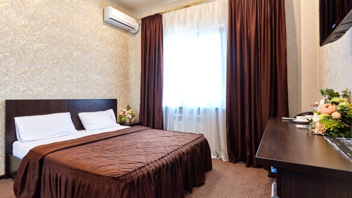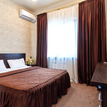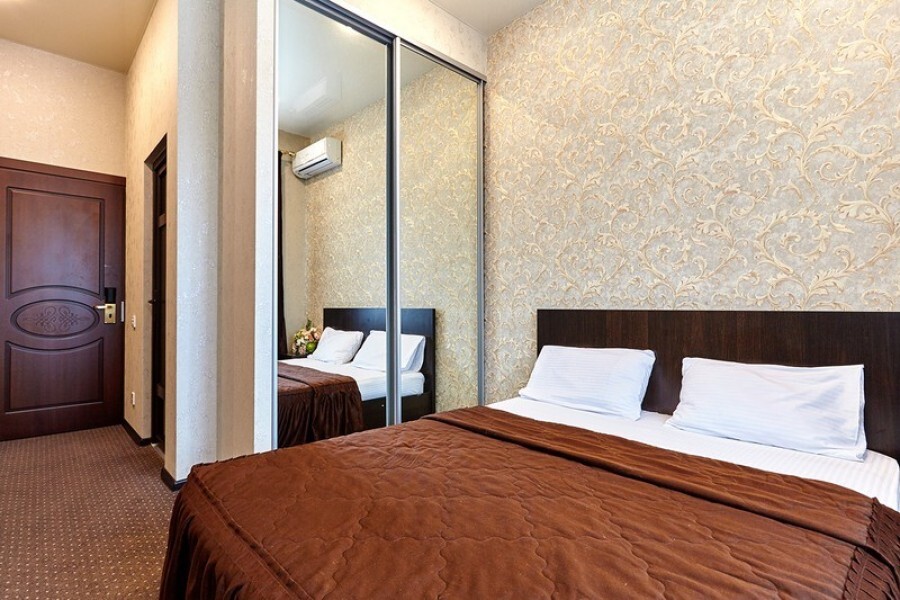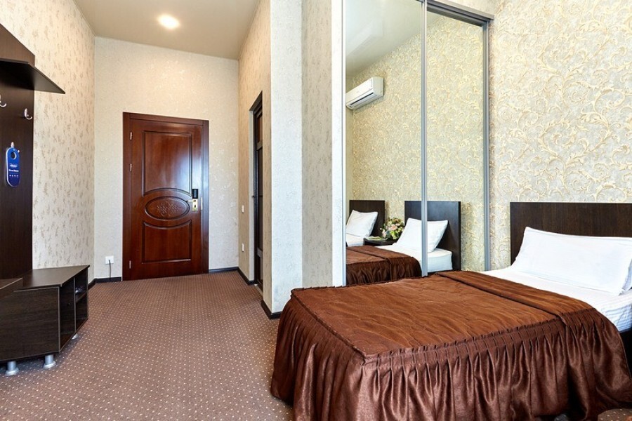 Отель расположен в центре Краснодара и располагает уютными и просторными современными номерами, оформленными в классическом выдержанном стиле с элегантной мебелью из дерева. В номерах гостей ждет бесплатный Wi-Fi, сейф, телевизор с ЖК-экраном и спутниковыми каналами, холодильник. Ванные комнаты располагают душем, феном и бесплатными туалетно-косметическими принадлежностями.