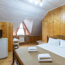 Удобная двуспальная, либо две односпальные кровати обеспечат вам отличный сон и отдых после активного дня. Кондиционер создаст вам приятную прохладу в жаркие летние дни , холодильник, ЖК телевизор и собственный санузел с душем обеспечат ваше удобство.