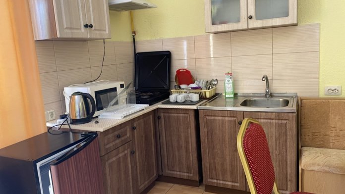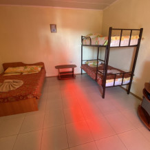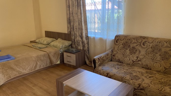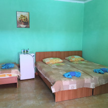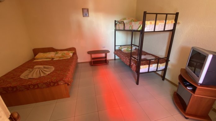 Пансионат «Мари-Анна» расположен в п. Межводное Черноморского района, в 50 шагах до пляжа ( до действующего пляжа 500м)и 150 метров до лимана с лечебными грязями. Предлагаем номера со всеми удобствами: мягкая мебель, телевизор, холодильник, кондиционер, туалет, умывальник, душевая кабинка. Холодная и горячая вода постоянно (пансионат не несет ответственности за работу поселковых коммуникаций: отключение света, воды и т.д.)