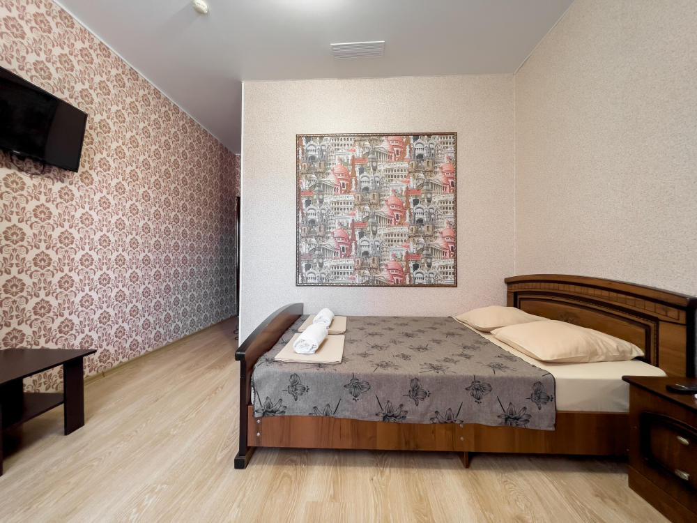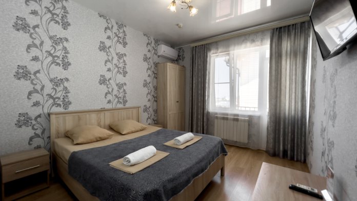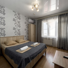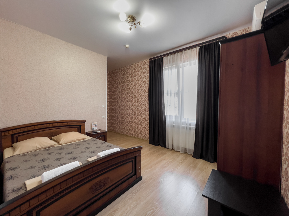 В номере двуспальная кровать или две односпальные, доп. место евро раскладушка за отдельную стоимость, шкаф, прикроватные тумбы, журнальный столик, душ, туалет, кондиционер, телевизор. Есть номера с балконами.