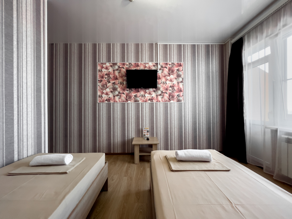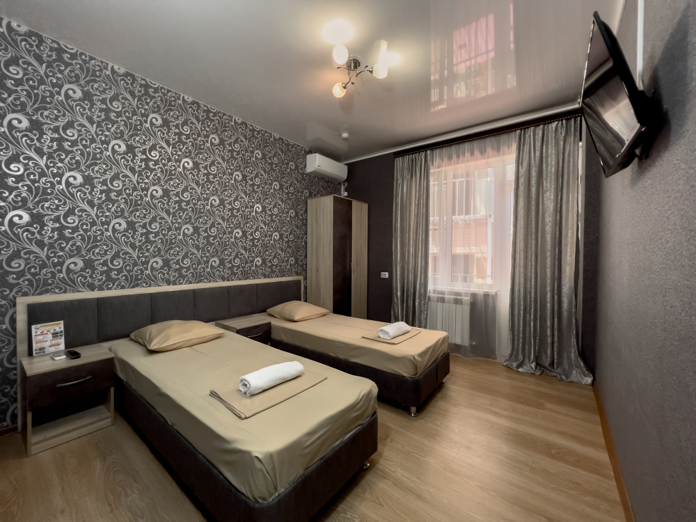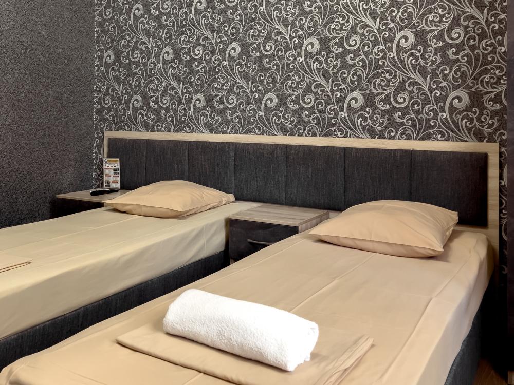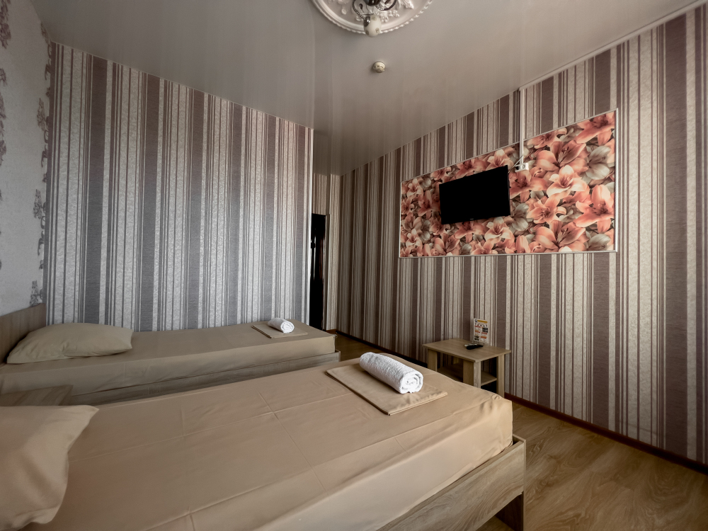 Однокомнатный номер, рассчитанный на два основных места. В комнате предусмотрено наличие двух односпальных кроватей. Возможно размещение дополнительного места в номере.