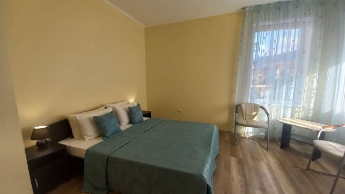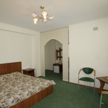 В номере двуспальная кровать или две односпальные кровати, кресло, тумбочки, столик, стулья, шкаф, сейф.