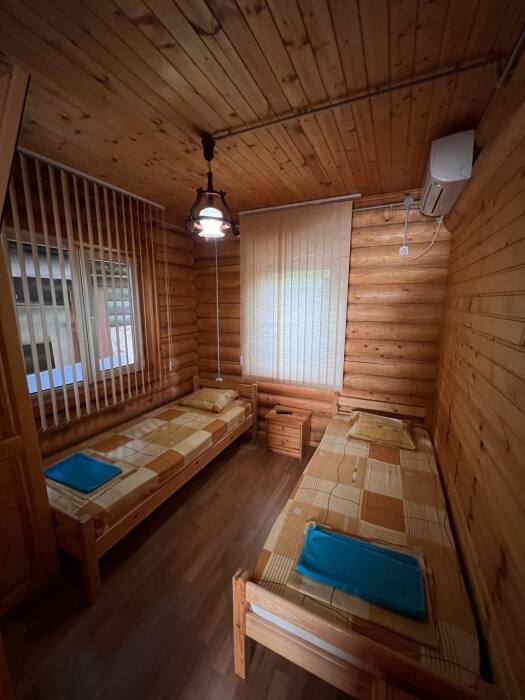 Два номера на 2 этаже в срубах с раздельными кроватями и один номер с двумя кроватями и двухъярусной кроватью в основном корпусе (2.4)