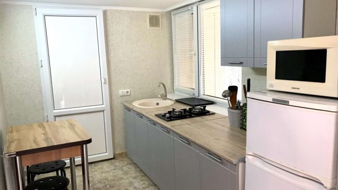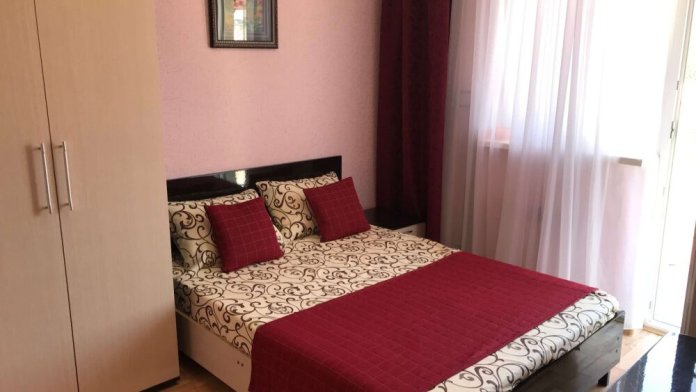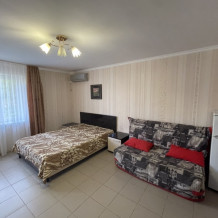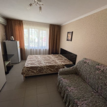 Квартира без балкона. Рассчитана для проживания до 3 человек. В квартире: двуспальная кровать, односпальная кровать, журнальный столик, стулья, шкаф. Для комфортного отдыха есть своя оборудованная кухня, микроволновая печь, газовая плита. сплит-система, телевизор- плазма , диагональ 80 см, 100 каналов, холодильник 2х камерный, электрочайник. Санузел оборудован душевой кабиной, раковиной, унитазом, зеркалом, вешалками. На 2 этаже квартира такая же, только она с 2 балконами и площадь около 25 кв.м. Размещение ребенка без дополнительного места 200 руб. в сутки.