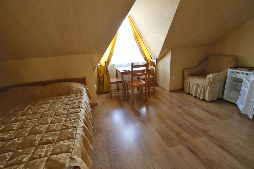 Из номера выход на общий панорамный балкон, где можно наслаждаться видом кавказских гор или провести романтический вечер под звёздами. Ваш балкон выделен пространством общего коридора. Выходите на общую веранду с бассейном, который уже с июня прогревается до комфортных +25°C.