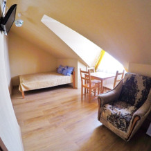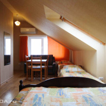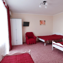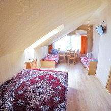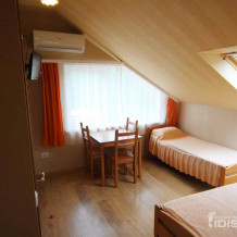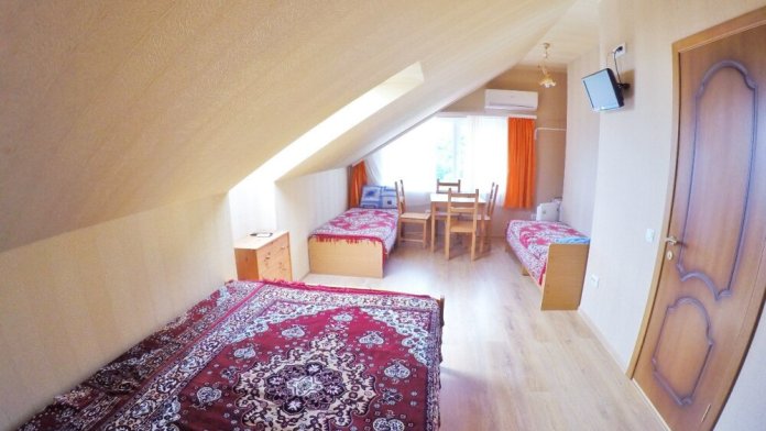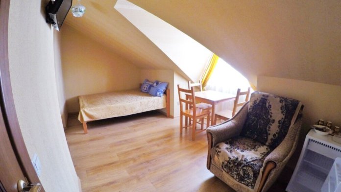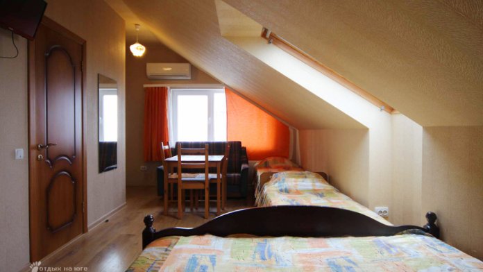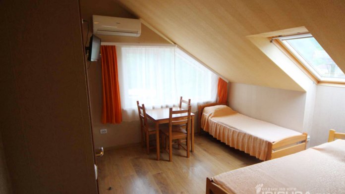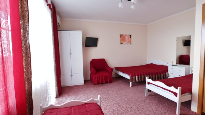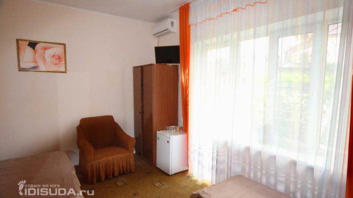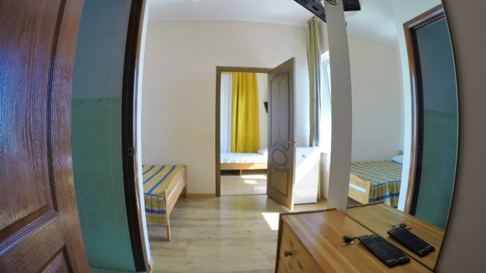 В каждом номере отдельный санузел (душ, туалет, раковина), холодильник, телевизор, чайник и все необходимые для отдыха мелочи. Во всех номерах широкий балкон с панорамным видом (исключение - мансарда). В 2 и 3-местных номерах балкон общий на два номера, в четырёхместных - отдельный балкон. Кондиционеры установлены только на мансарде (номера без балконов). На каждом этаже есть гладильная доска. Во дворе и на первом этаже гостиницы раздаётся бесплатный Wi-Fi интернет.