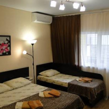 2-х и 3-х местные номера со всеми удобствами. В номерах стандартная мебель, сплит-система, тумбочки, шкаф, телевизор, холодильник, сейф, балконы с летней мебелью.