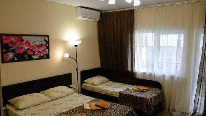 В номере 2-спальная кровать, кресло-кровать, шкаф, зеркало, пуфик, сейф, плоский телевизор, холодильник, сплит-система, санузел (холодная и горячая вода круглые сутки), банные полотенца для каждого проживающего, балкон с летней мебелью. (Номер с возможностью предоставления третьего места),