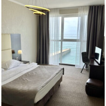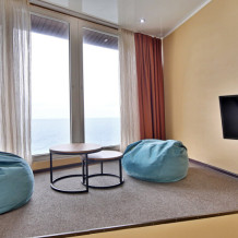 Двухкомнатный номер люкс с видом на море несомненно пользуется спросом у семейных пар. В номере могут разместится до 4 чел. Не выходя из номера Вы сможете насладиться встречей рассвета и заката. Вид на море зачаровывает и не оставляет никого равнодушным. Номер полностью укомплектован всем необходимым. Номер находится на 4 и 5 этажах. Лифта в отеле нет, пожалуйста учитывайте это при бронировании.