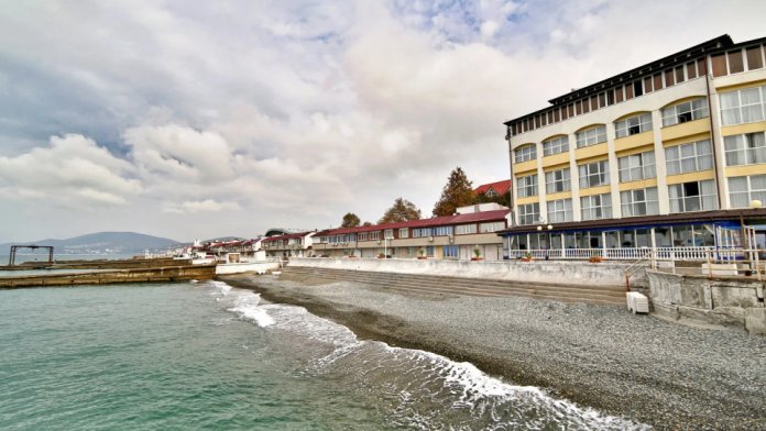 Наш отель находится на первой береговой линии в Адлере. Песчано-галечный пляж в 50 метрах от отеля.