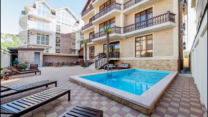 Отель «Скиф» расположен в лучшем районе Лазаревское, в 100 метрах от реки, с видом на море и горы, с тёплым бассейном.