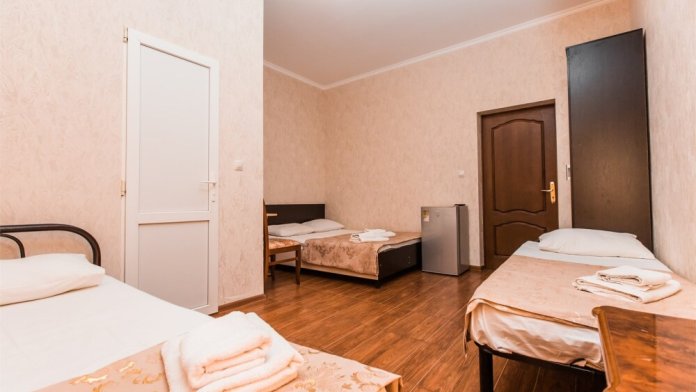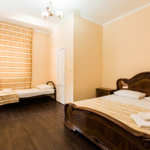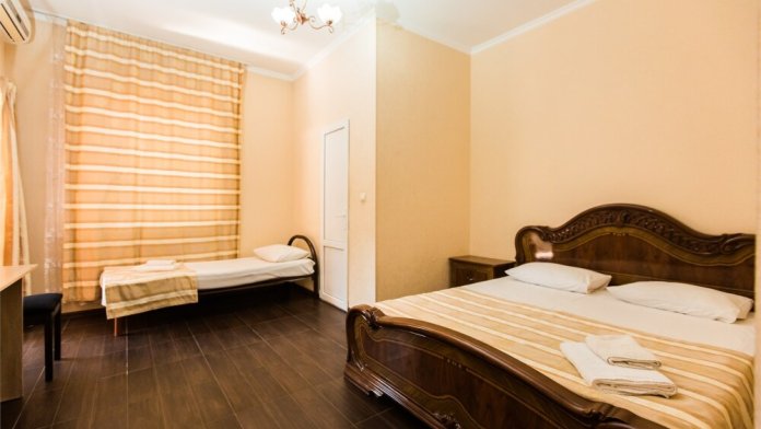 2-комнатный семейный просторный номер, оснащенный всем необходимым для комфортного отдыха находится на 2-ом и 3-ем этажах, санузел в номере (ванна, унитаз, раковина), телевизор, холодильник, кондиционер, возможно размещение семьи с 3-мя детьми.