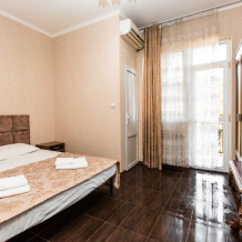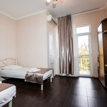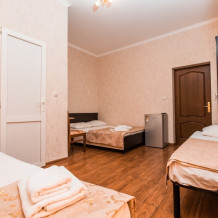 4-местный номер на 2-ом или третьем этажах, удобства в номере (душ, унитаз, раковина), балкон, двуспальная и 2 односпальные кровати.