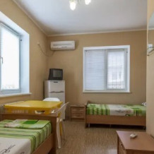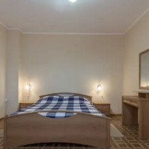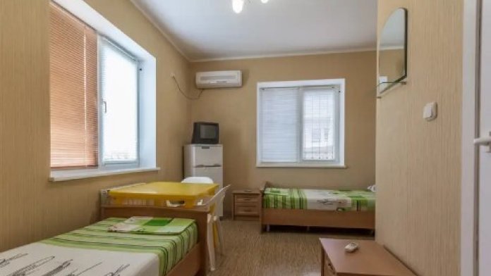 На первом этаже балконов нет, на 2-3 этажах номера с балконами. Спальных мест в номерах по два, в некоторых номерах возможно дополнительное место бесплатно. В номере: односпальные или двуспальные кровати, шкаф, стулья, 2 прикроватные тумбочки, зеркало, журнальные столики и стол в некоторых номерах. Кухня общая - на первом этаже.