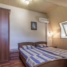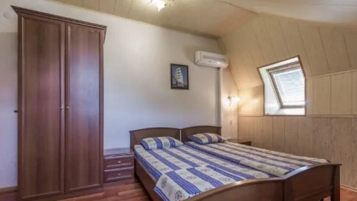 В одной комнате - 2-х спальная кровать, в другой - 2-х спальный диван. Номера расположены на 2 и 3 этажах. Из каждой комнаты выход на свой балкон. В номере - телевизор в каждой комнате.