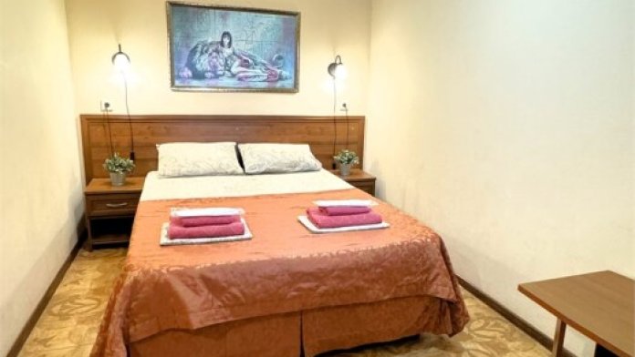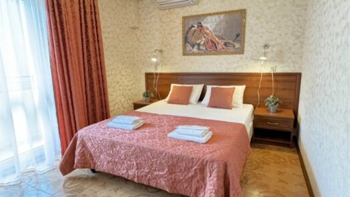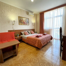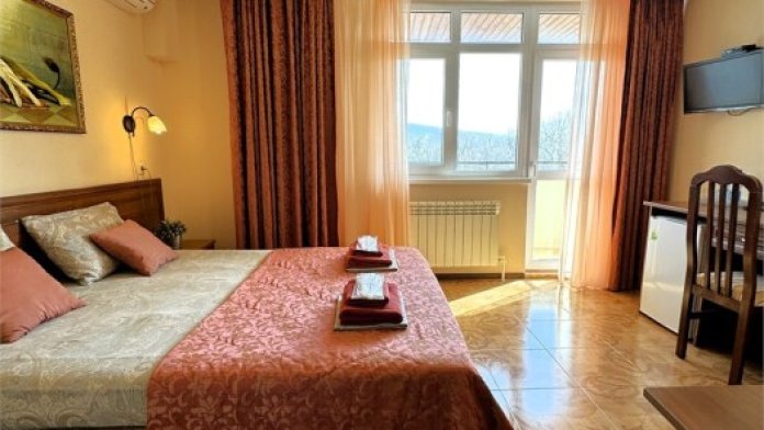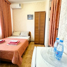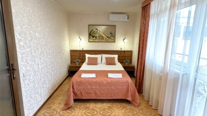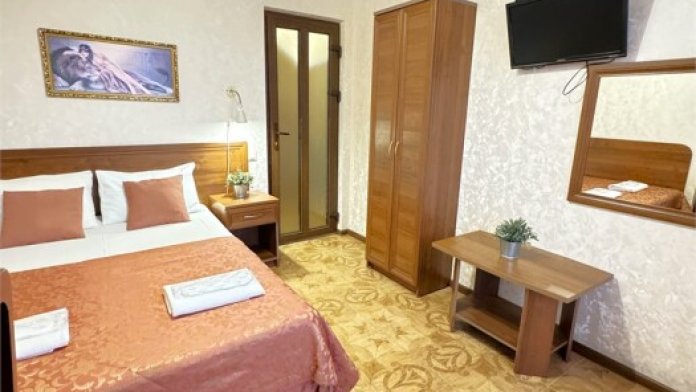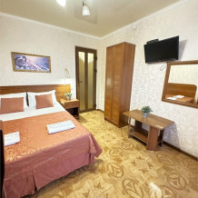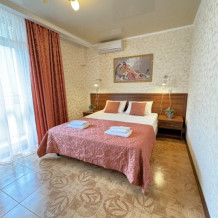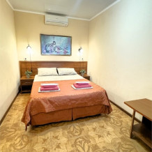 Уютный маленький двухместный номер состоит из комнаты и санузла. Номера данной категории расположены на 2 и 3 этажах. Номер оснащен двуспальной кроватью с ортопедическим матрасом (размеры кровати 180*140), шкафом для одежды, туалетным столиком с зеркалом, мини-холодильником, кондиционером, телевизором с плоским экраном. Номер укомплектован постельным бельем, полотенцами. В ванной комнате, укомплектованной феном и набором туалетно-косметических принадлежностей, установлен душ.