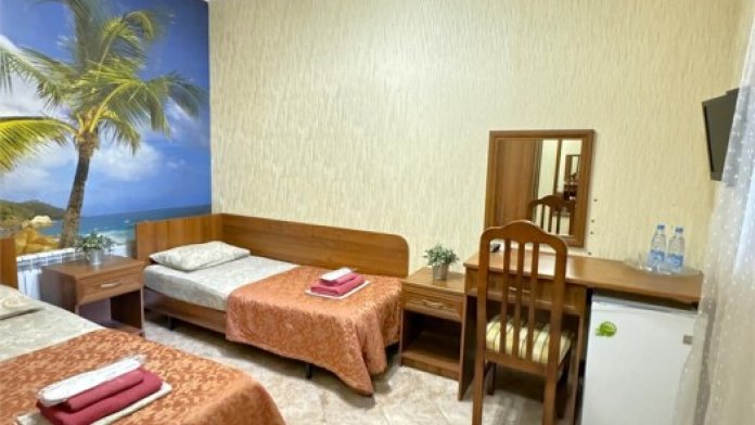 Комфортный трехместный номер с балконом состоит из комнаты и санузла (общая площадь 16м2). Номера данной категории расположены на 4 этаже. Номер оснащен двуспальной и односпальной кроватями с ортопедическими матрасами, тумбочками, шкафом для одежды, туалетным столиком с зеркалом, журнальным столиком, мини-холодильником, кондиционером, телевизором с плоским экраном. Номер укомплектован постельным бельем, полотенцами. В ванной комнате, укомплектованной феном и набором туалетно-косметических принадлежностей, установлен душ.