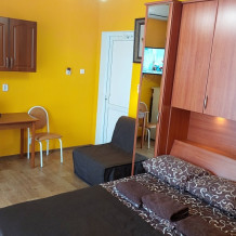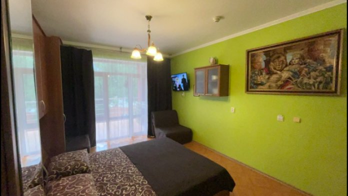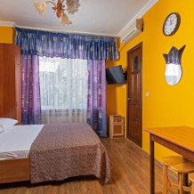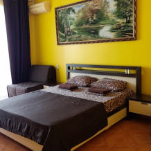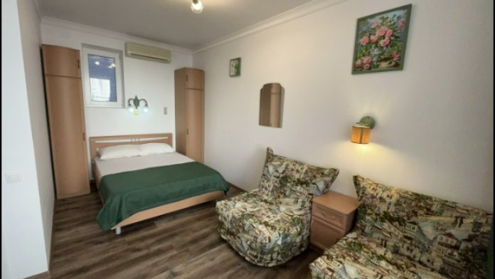 Комфортабельные комнаты рассчитанные на размещение от 1 до 3 человек, цена указана за номер. Обеспечены всем необходимым для полноценного отдыха. Комнаты оснащены: двуспальной кровать Место для третьего человека, комфортабельное кресло - кровать. На каждом этаже есть гладильная доска с утюгом.