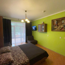 Отличное расположение - до моря всего 5-7 минут, через парк к набережной, где всегда живо. Хозяева очень гостеприимные и вежливые. Уже отдыхали у них дважды и жили в трех разных номерах, два из которых с балконом и великолепным видом на парк Олимп, особенно вечером. В номере есть всё: туалет, душ, телевизор, холодильник, сейф, кондиционер, и даже посуда и чайник - в общем, для полноценного отдыха всё предусмотрено. Особенно хочу отметить постельное белье: во всех трех номерах, где мы останавливались, оно было свежим, чистым и ароматным, а полотенцев на одного человека даже по два штуки - это очень важно, учитывая опыт пребывания в дорогих гостиницах, где приходилось просить заменить постель из-за её состояния. Большое спасибо хозяевам за чистоту в номере! Во дворе тоже чисто и ухоженно, много зелени, а также есть парковка, что особенно важно в сезон.