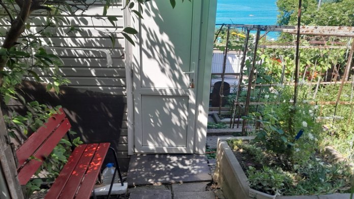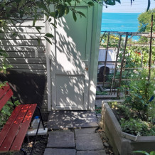 На территории дворика имеется три открытых кухни с видом на море, где можно приготовить пищу. Есть мангал для приготовления шашлыка, зеленый двор, беседка. Предусмотрена парковка.