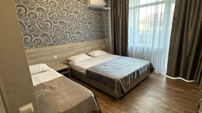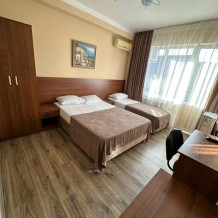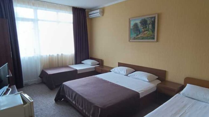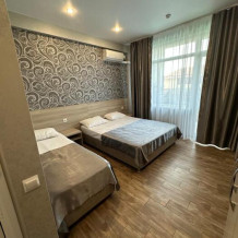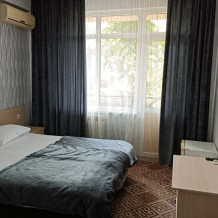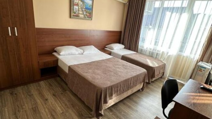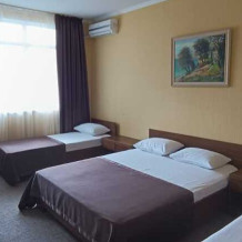 Трёхместные номера стандарт расположены на втором и третьем этажах. Номера с индивидуальным балконом. В номере двухспальная кровать и односпальная ,шкаф, туалетный столик с зеркалом , тумбочки , холодильник ,кондиционер и телевизор , фен, комплект полотенец , постельное белье . Душ и туалет находят ся в номере . ,