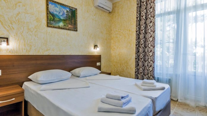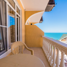 Комфортабельный, уютный семейный номер с балконом и прямым видом на море, площадью 20-22 кв.м. рассчитанный на проживание от 2-х до 4-х человек. Номер может быть, как с раздельными кроватями, так и с общей кроватью.Дополнительно можно арендовать детскую кроватку 400 рублей в сутки.